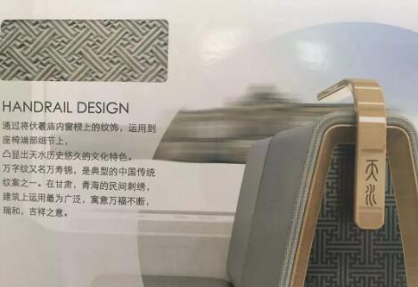 座椅扶手既有江南秀雅,又有西北雄健的天水明清家具風格,采用古樸簡約的形態(tài),配合客艙座椅,塑造出雅致大方、舒適宜人的站坐空間。