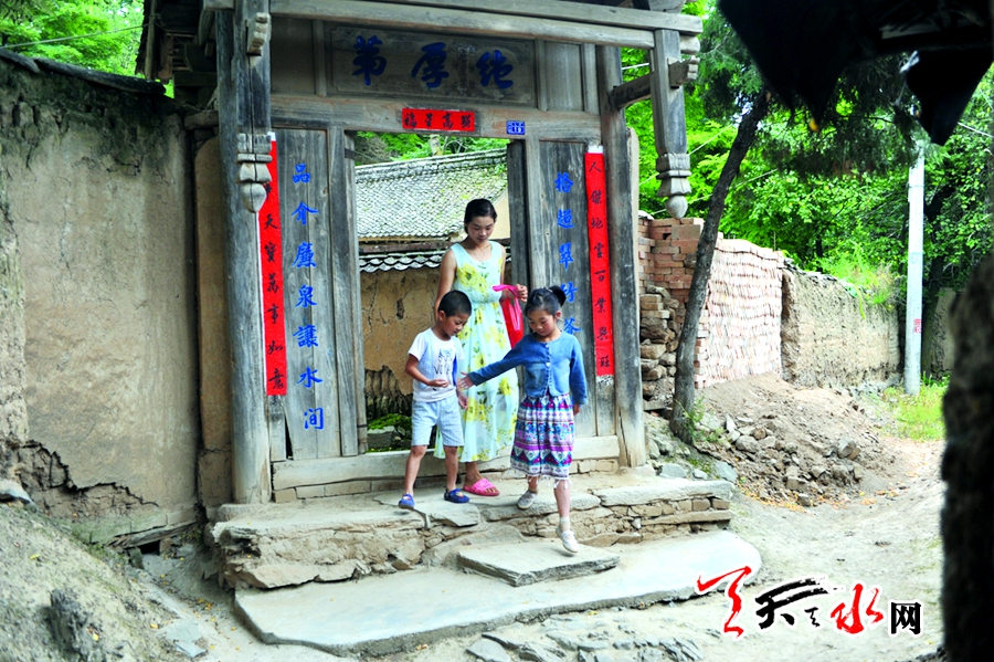 ????“后城”,也叫舊城和王家城,城內(nèi)居住著八、九戶人家。據(jù)村民說,在后城有一王姓人家,先祖有一人在清代考取了貢生,人們稱他“貢爺”,后赴省城做官。我們隨著一幫孩子來到這家時,迎面便見一座垂花門,雖破舊不堪,但基本保存完好,依稀可見當(dāng)年的富麗堂皇。垂花大門上有“純厚第”三個大字,門框上有一幅對聯(lián):格超翠竹蒼松上,品介廉泉讓水間。