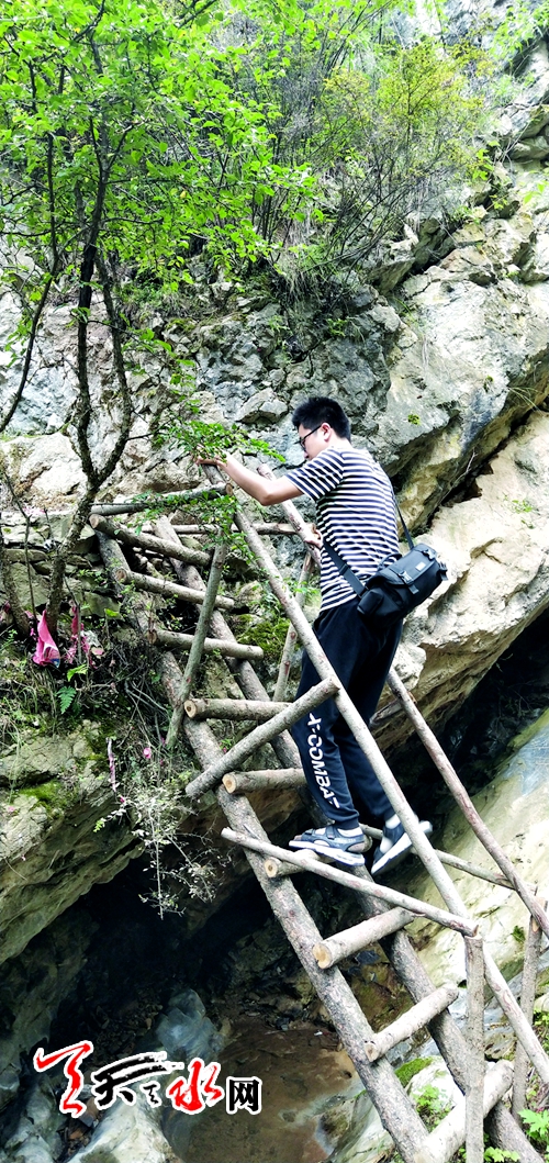 ????近年當(dāng)?shù)卮迕裨诰皡^(qū)內(nèi)發(fā)現(xiàn)了幾處大型天然溶洞,在西北地區(qū)十分罕見,更是自然奇觀。溶洞洞口被兩側(cè)樹木遮擋得嚴(yán)嚴(yán)實實,十分隱蔽。溶洞入口狹窄,需蹲下身子方可進入。洞內(nèi)巖壁濕滑,腳下泥濘,只能容納一人屈膝通過。再往里行五六米后,發(fā)現(xiàn)一洞中洞,洞與洞的垂直深度在15米左右,為方便出入,熱心村民在洞內(nèi)搭建了軟梯,從懸梯下去后洞內(nèi)豁然開朗,面積有一間教室大小,中間寬闊兩側(cè)窄,高有十多米,洞頂有鐘乳石倒掛,姿態(tài)各異的奇石一覽無余,時不時可以看見蝙蝠和飛蛾的蹤跡。