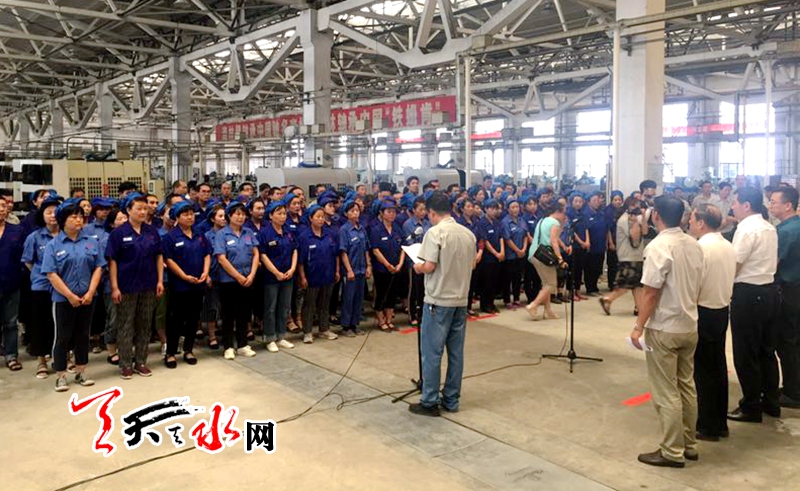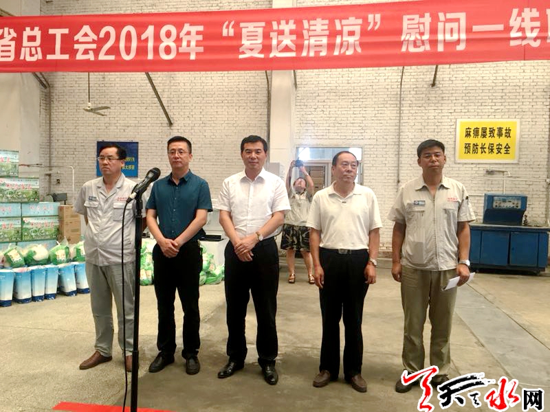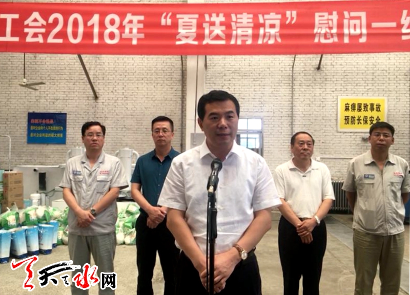 ????天天天水網(wǎng)訊【記者 童強(qiáng)】8月1日,市總工會(huì)"夏送清涼"慰問活動(dòng)深入天水海林軸承有限公司看望慰問高溫一線作業(yè)職工,宣布市總工會(huì)2018年夏送清涼活動(dòng)正式啟動(dòng)。甘肅省總工會(huì)副主席丁光東、天水市副市長(zhǎng)程偉東一同慰問并參加啟動(dòng)儀式。