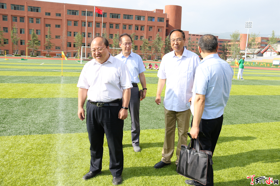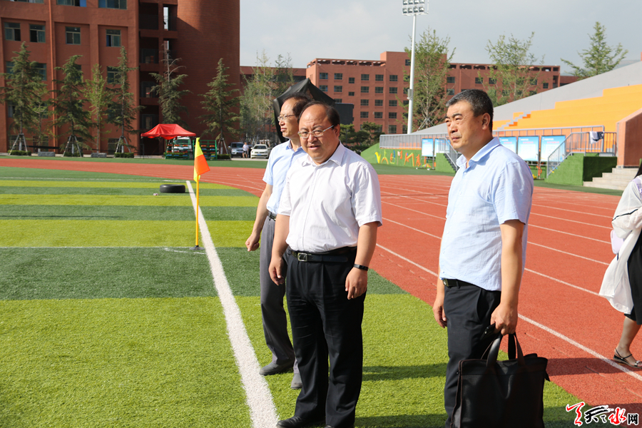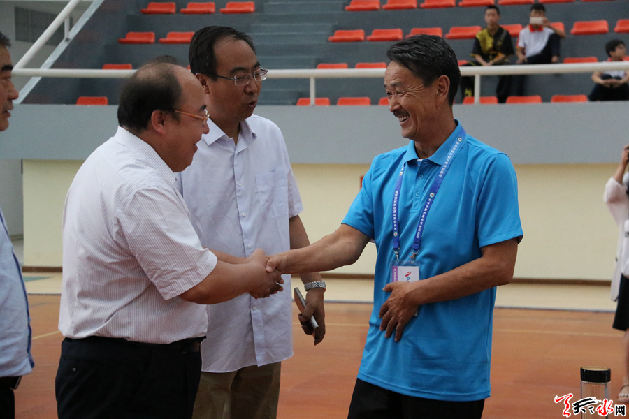 天天天水網(wǎng)訊 8月3日上午,市委常委、副市長(zhǎng)宮輝到市一中麥積校區(qū)賽點(diǎn)觀看全市第五屆中學(xué)生運(yùn)動(dòng)會(huì)武術(shù)和初中足球比賽,并對(duì)開幕式準(zhǔn)備工作提出具體要求。