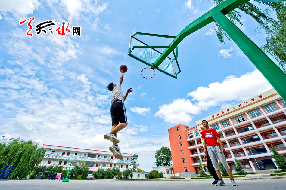 ????學(xué)生們?cè)谕舸ㄖ袑W(xué)打籃球。