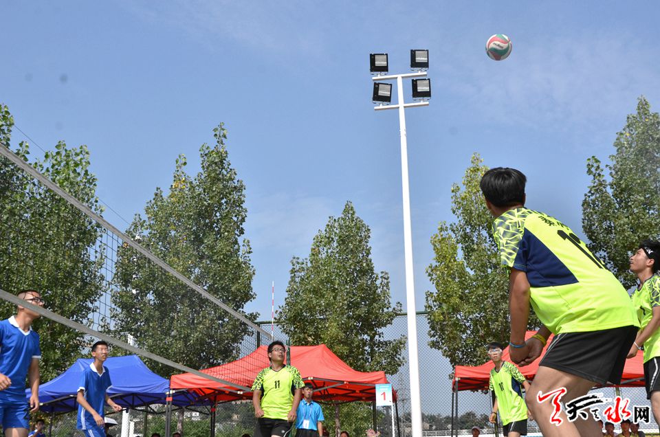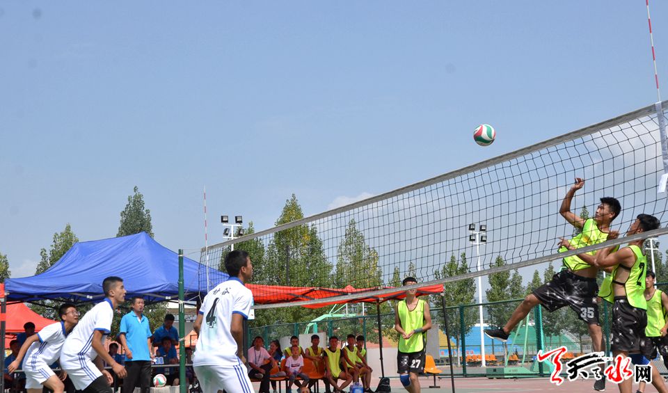 在當(dāng)日進(jìn)行的排球比賽中,7支代表隊(duì)冒著夏日的酷暑,展開(kāi)激烈比拼。在比賽中,武山隊(duì)與甘谷隊(duì)比賽亮點(diǎn)頻出、精彩紛呈,兩支球隊(duì)你追我趕,互不相讓?zhuān)确忠恢碧幱谀z著狀態(tài),甘谷隊(duì)以嫻熟的技術(shù)以3:1的比分獲勝,獲勝的各代表隊(duì)將進(jìn)入下一輪的角逐。