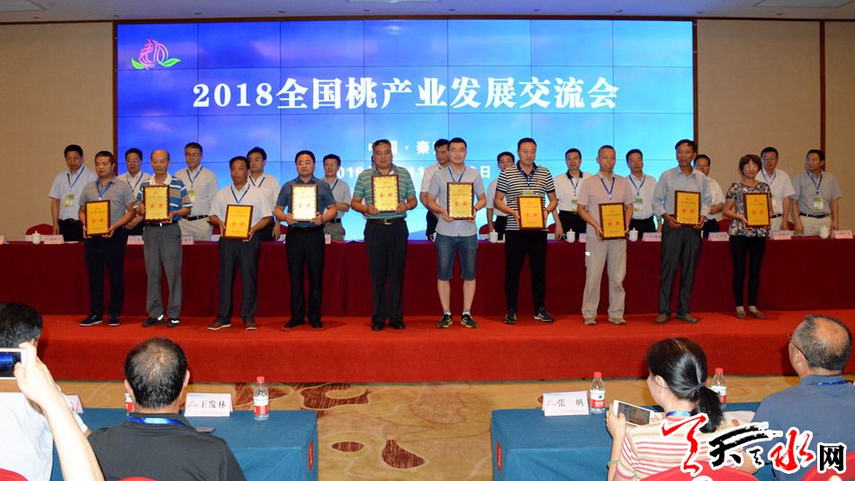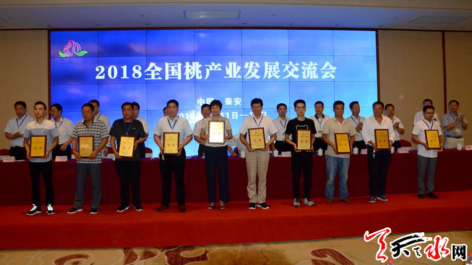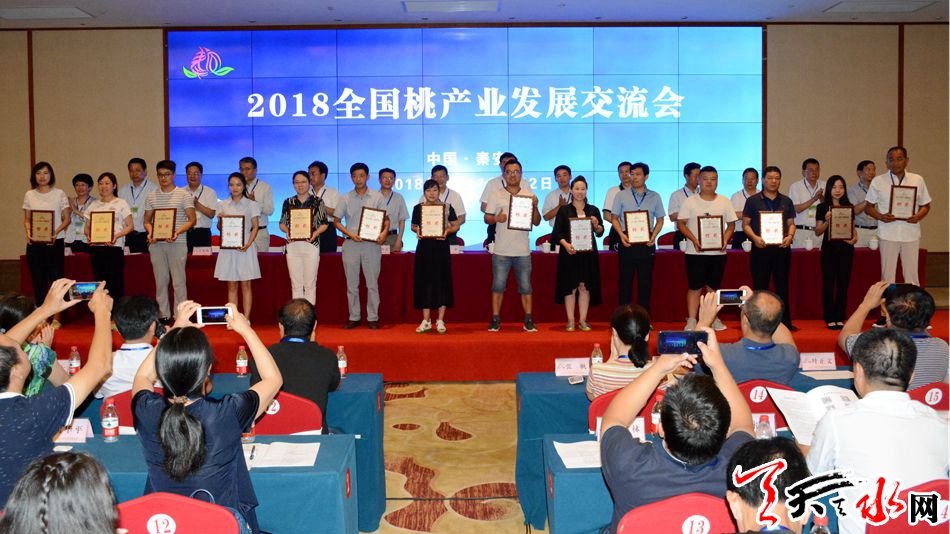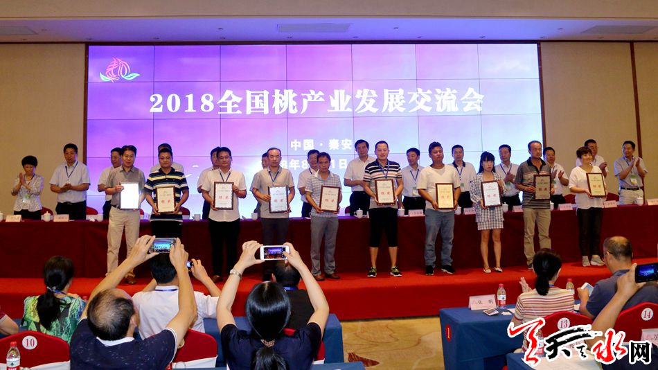 (為“2018‘秦安杯’全國(guó)蜜桃大賽”獲獎(jiǎng)單位頒獎(jiǎng))