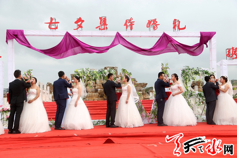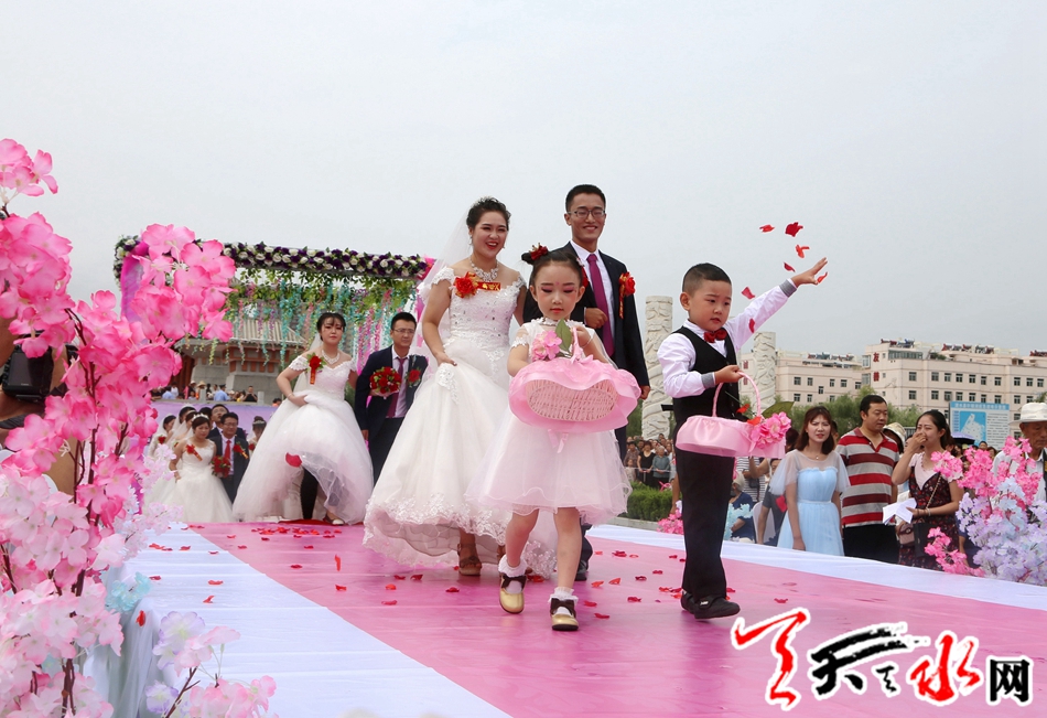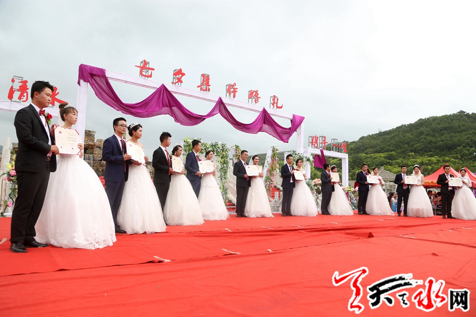 ????本次集體婚禮有10對(duì)新人在縣四大組織全體在家領(lǐng)導(dǎo),各鄉(xiāng)鎮(zhèn),各單位負(fù)責(zé)人,現(xiàn)場(chǎng)親朋及鄉(xiāng)親、群眾千于人的共同見(jiàn)證下,邁入幸福的婚姻殿堂。天水市人大常委會(huì)副主任、清水縣委書(shū)記劉天波作了致辭;清水縣人大常委會(huì)主任周偉東為新人證婚,縣政協(xié)主席丁旺喜為新人頒發(fā)了集體結(jié)婚證書(shū)。