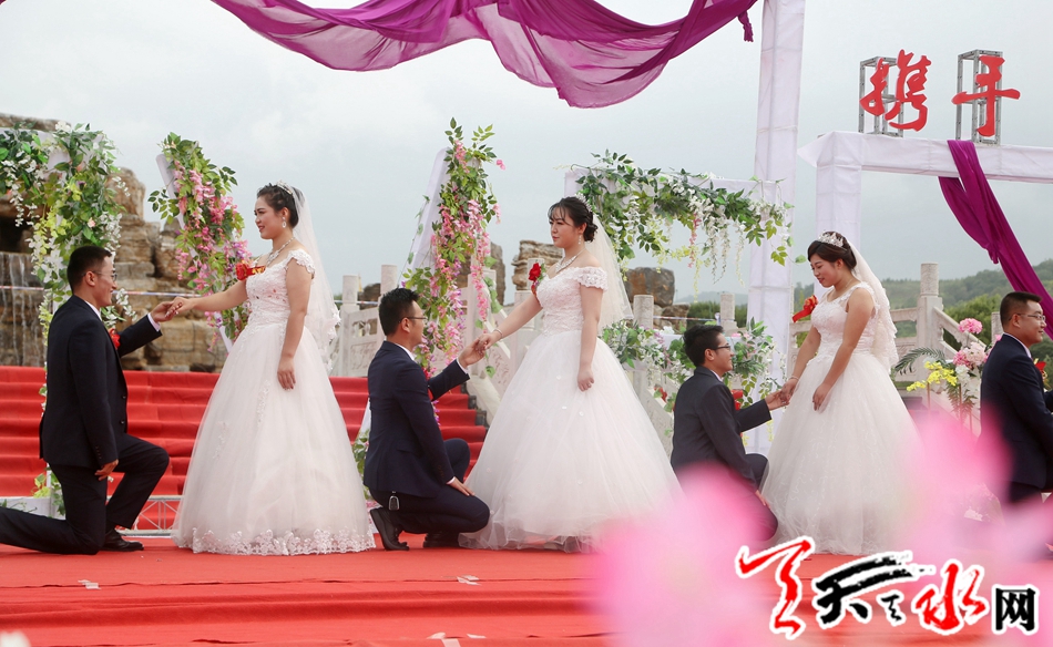 ????天天天水網(wǎng)訊 為引領(lǐng)社會(huì)新風(fēng)尚,抵制高價(jià)彩禮,推動(dòng)移風(fēng)易俗,倡導(dǎo)文明新風(fēng),樹(shù)立積極健康的愛(ài)情觀、婚姻觀和消費(fèi)觀,展示新時(shí)代青年良好的精神風(fēng)貌,共享青春嘉年華,8月16日,清水縣在軒轅湖公園舉辦“緣定清水,攜手一生”為主題的集體婚禮。