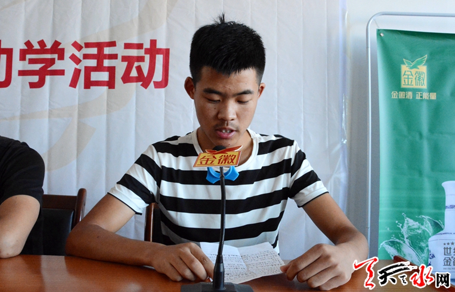 活動現(xiàn)場為33名學(xué)子每人資助2000元現(xiàn)金,受助學(xué)生代表進行了發(fā)言,表達了對金徽正能量公益基金會的誠摯感謝。