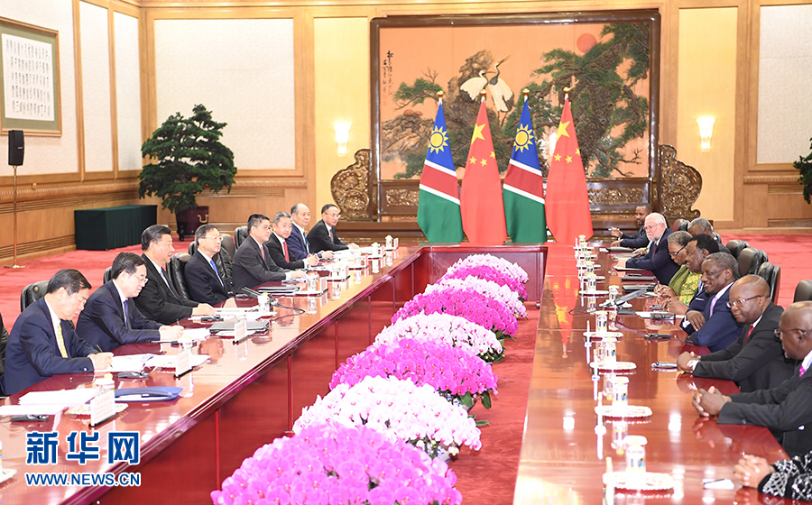 9月2日,國家主席習(xí)近平在北京人民大會堂會見納米比亞總統(tǒng)根哥布。新華社記者 謝環(huán)馳 攝