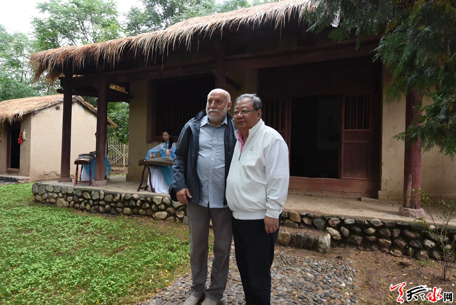 一大早,采風團成員來到位于麥積區(qū)甘泉鎮(zhèn)柳家河村的東柯杜甫草堂,參加了“東柯杜甫草堂”石碑落成揭幕儀式。揭幕儀式結束后,大家共同參觀了修葺一新的杜甫草堂,穿越時空感受詩圣杜甫在此寓居的時光。第三屆李杜詩歌獎銀獎獲得者高鵬程說:“作為一個詩歌寫作者,能來天水這個李白和杜甫經(jīng)歷過和接觸過的地方,意義重大。我的爺爺是天水秦安人,天水也是我的祖籍地,這次來天水能感受我的先祖生活過的地方,對我來說還有另一重意義。”