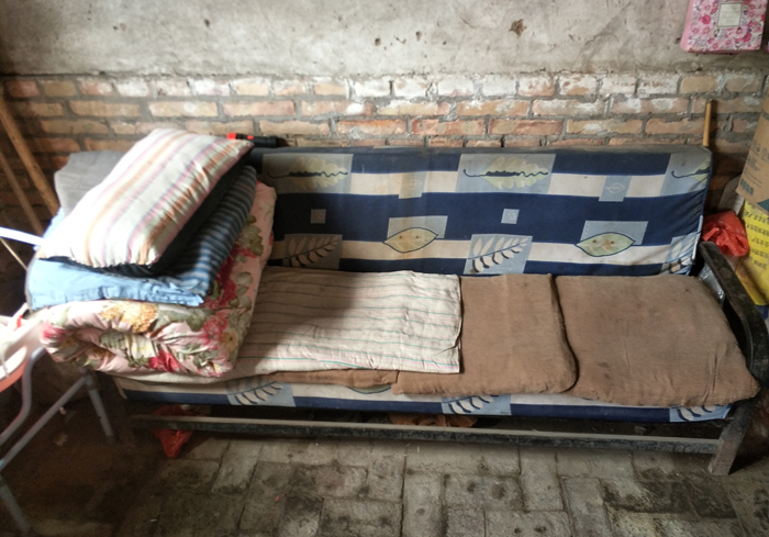 六年來,董玉蘭就睡在這一個簡陋的小沙發(fā)上。圖片來源:東營市文明辦?