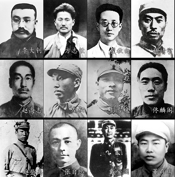 李大釗、方志敏、瞿秋白、楊靖宇、趙尚志、左權、彭雪楓、佟麟閣、趙登禹、張自忠、戴安瀾、董存瑞……