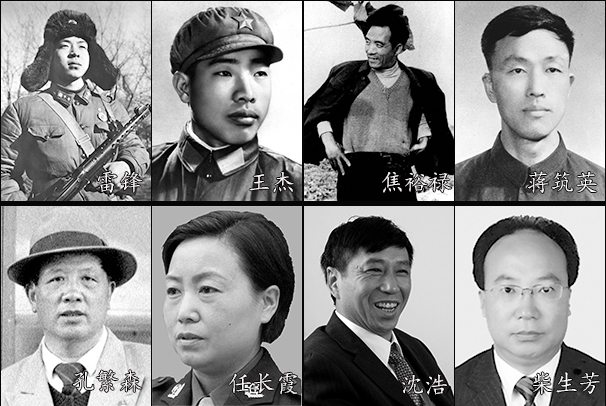 雷鋒、王杰、焦裕祿、蔣筑英、孔繁森、任長霞、沈浩、柴生芳……