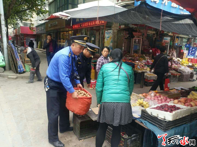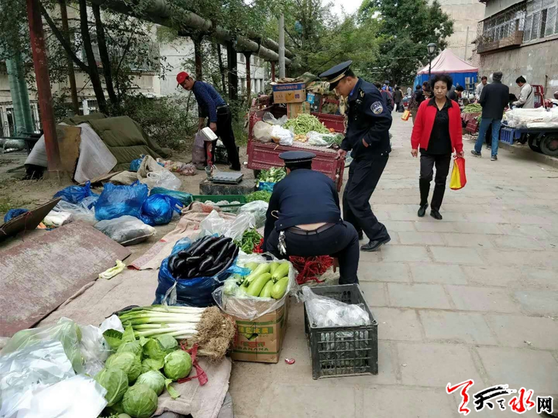 一、強化流動攤販的專項整治工作。每逢節(jié)假日前夕,不規(guī)范經(jīng)營的現(xiàn)象也隨之增多。隨意占道設攤經(jīng)營,給過往車輛行人以及附近居民的出行造成了極大的困擾。秦州區(qū)執(zhí)法局玉泉中隊在國慶節(jié)前對轄區(qū)內(nèi)的大眾南路、藉河南路、師院路等主要干道及人流密集的市場周邊進行集中整治,在力求方便人們買賣的同時,保持市場周邊的和諧、有序。