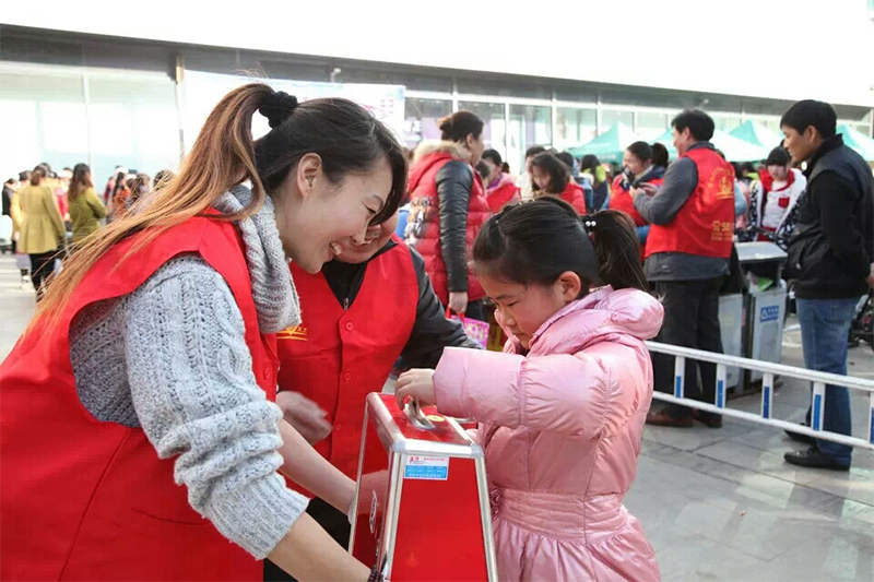 翟春蕾為患兒募捐。圖片來源:河南文明網(wǎng)?