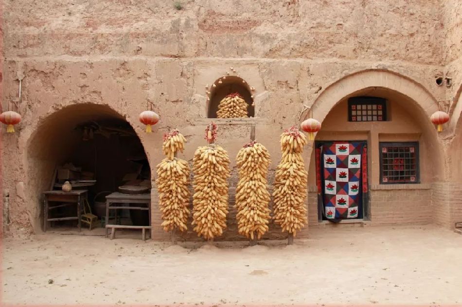 2018-10-06,山西運(yùn)城。紅燈籠,黃苞谷,土窯房里迎豐收。作者:康勝