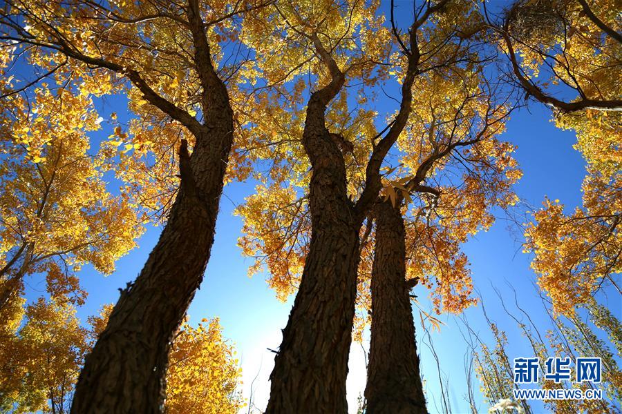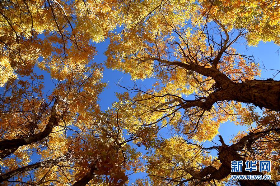 金秋時(shí)節(jié),甘肅省敦煌市莫高鎮(zhèn)的胡楊林被秋色染黃,美不勝收。