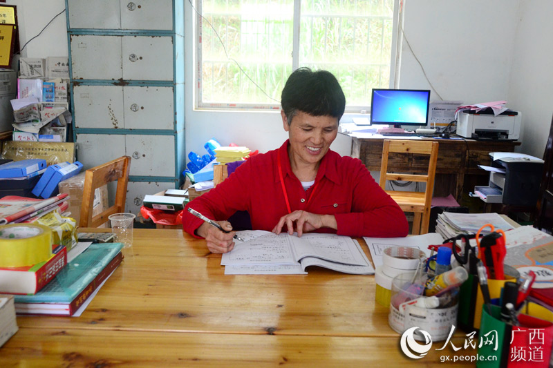 李水英正在撰寫教育課題。圖片來源:人民網(wǎng)廣西頻道