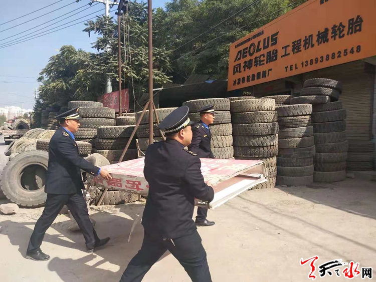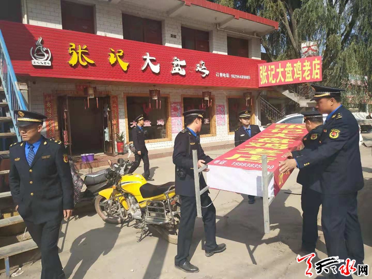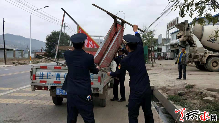 天水郡中隊(duì)積極組織執(zhí)法人員對(duì)紅山路各類(lèi)亂設(shè)亂立戶外廣告牌匾進(jìn)行整治清理,采取先宣傳通知再整治,在路段持續(xù)廣泛宣傳、通知整治私設(shè)戶外廣告牌匾的意義,并將整治的方法步驟和要求廣而告之,爭(zhēng)取市民的理解和支持。采取自行拆除和依法暫扣的方法,對(duì)逾期未能自行拆除的,并依法進(jìn)行暫扣處罰。在整治活動(dòng)中共清理小廣告200余張,拆除條幅10余條,依法暫扣廣告牌20余塊,清理破損廣告垃圾2車(chē)次,下步中隊(duì)要進(jìn)一步加強(qiáng)對(duì)戶外廣告整治工作進(jìn)行督促檢查,并加大日常巡查力度,防止回潮反復(fù),保持整治成效,促進(jìn)常態(tài)長(zhǎng)效。
