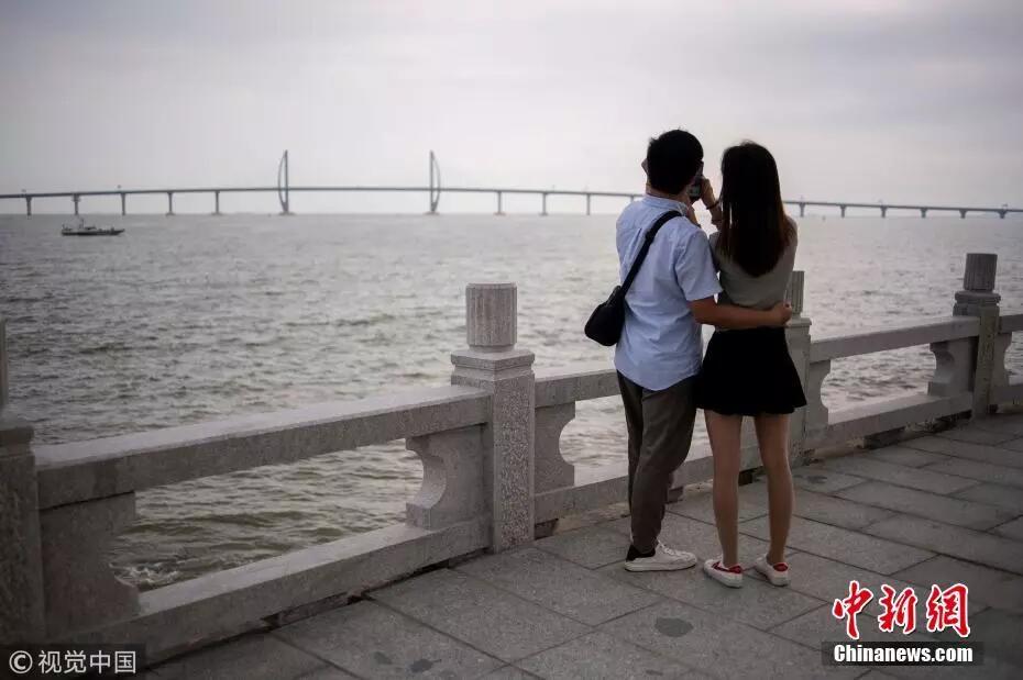 港珠澳大橋通車(chē)前, 珠海民眾前去觀景,拍照留念。
