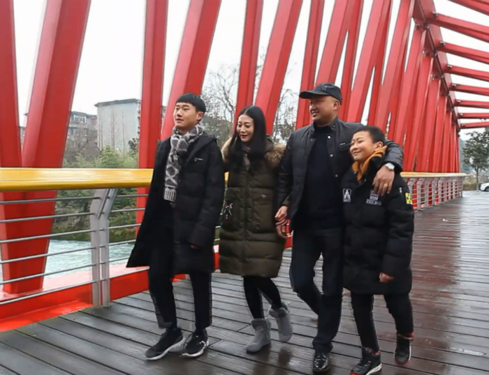 如今已經(jīng)長大的小青(左一)和家人一起逛公園。圖片來源:成都文明網(wǎng)