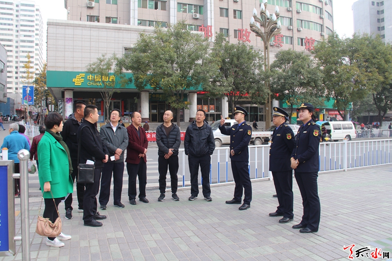 ????天天天水網(wǎng)訊 10月30日,嘉峪關(guān)市綜合執(zhí)法局黨組成員、副局長(zhǎng)武軍斌一行9人來秦州區(qū)考察城市管理與城管體制改革等工作。