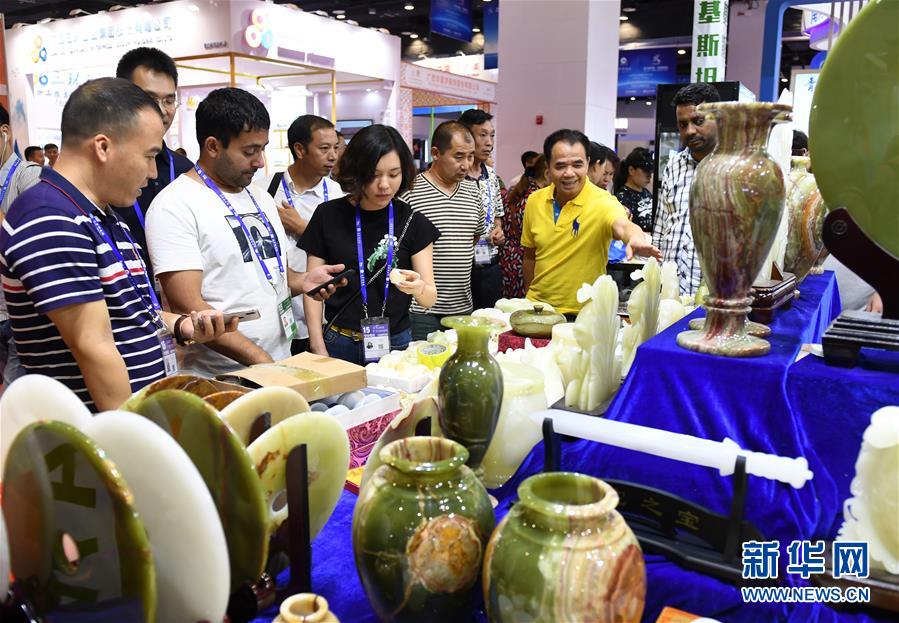 在廣西南寧國際會展中心,消費者在第十五屆中國—東盟博覽會上選購商品(9月13日攝)。新華社記者 陸波岸 攝