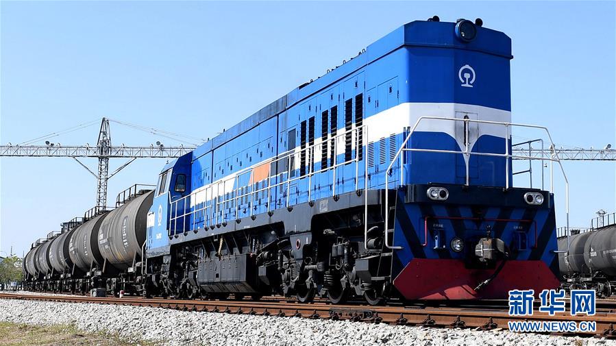 一列火車緩緩駛出欽州港(2017年12月19日攝)。新華社記者 張愛林 攝