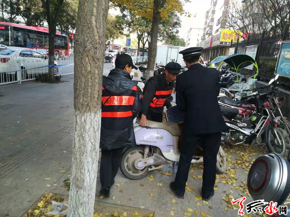 天天天水網(wǎng)訊(通訊員 孟劍鋒)近年來,綠色環(huán)保的出行理念逐步走進(jìn)了百姓的生活,然而,在人們開始體驗綠色出行帶來便利的同時,非機動車亂停亂放也成為了突出問題。由于秦州區(qū)建設(shè)路醫(yī)院、學(xué)校等單位較多,在停車點相對少的情況下,自行車、電動車亂停亂放、阻塞交通的現(xiàn)象時有發(fā)生。許多非機動車隨意停放,例如市第一人民醫(yī)院門口,由于停車需求大,停車位更顯緊張,停車秩序也較為混亂。