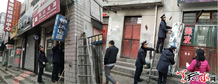 2018年11月30日,在秦州區(qū)委副書(shū)記、區(qū)長(zhǎng)劉文璽的現(xiàn)場(chǎng)督查指導(dǎo)下,城管、公安、交警、環(huán)衛(wèi)、工商、商務(wù)等部門以及街道社區(qū)出動(dòng)工作人員100余名,對(duì)南明路環(huán)境衛(wèi)生進(jìn)行綜合整治,共取締各類占道攤點(diǎn)130余處,規(guī)范店外經(jīng)營(yíng)和倚門經(jīng)商50余家,拆除陳舊破損廣告牌80余塊,清理亂堆亂放雜物和生活垃圾25處,拆除亂搭亂建8處,正式拉開(kāi)了全區(qū)背街小巷老舊小區(qū)環(huán)境衛(wèi)生綜合整治的序幕。
