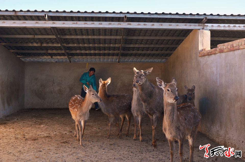 12月8日,隆冬時(shí)節(jié),寒風(fēng)凜冽。在甘谷縣八里灣鎮(zhèn)上岔村一處四面環(huán)山的山坳里,不時(shí)傳來(lái)鹿群呦呦的鹿鳴聲,身著工作服的郭龍平正在給100只饑腸轆轆的“鹿寶寶”喂養(yǎng)飼料,寒冬季節(jié),這些褪去毛色的“鹿寶寶”將在來(lái)年開(kāi)春“羽化成蝶”成一只只身披金色霞光的金鹿。