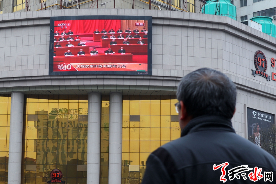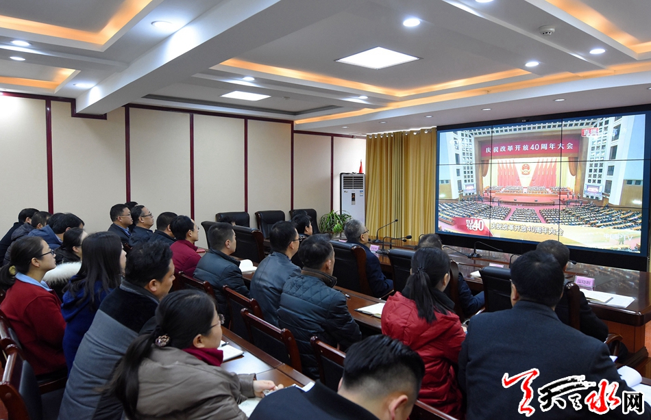 天天天水網(wǎng)訊【全媒體記者??王曉馨?馬放?吳麗娜?馮麗娟】12月18日上午10時,慶祝改革開放40周年大會在人民大會堂隆重舉行,中共中央總書記、國家主席、中央軍委主席習(xí)近平發(fā)表了重要講話。天水市委、市人大常委會、市政府、市政協(xié)主要領(lǐng)導(dǎo)和機關(guān)干部收聽收看了大會現(xiàn)場直播。