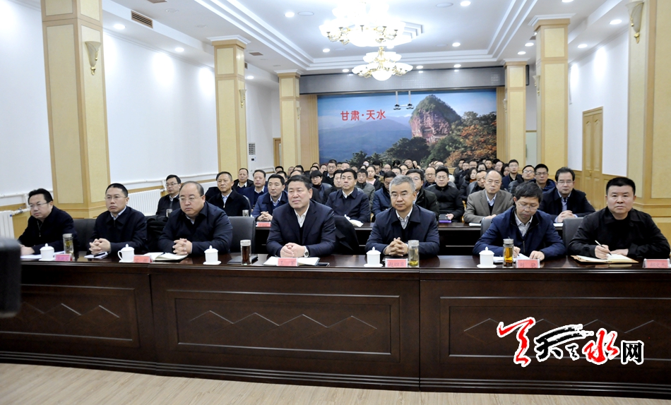 天水市領(lǐng)導(dǎo)收看大會實況直播 記者?楊旭 攝