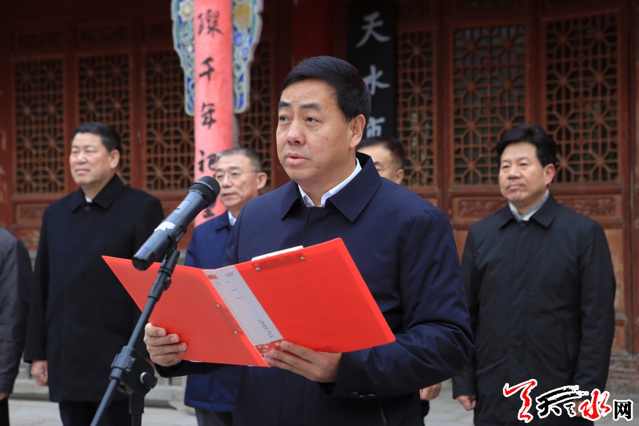 逯克宗主持開幕式時說,40年來,我市積極順應(yīng)改革開放的歷史大潮,譜寫了一幅幅轉(zhuǎn)型跨越發(fā)展的絢麗篇章。40年來,在歷屆市委、市政府的正確領(lǐng)導(dǎo)下,全市上下解放思想,銳意創(chuàng)新,勵精圖治,攻堅克難,經(jīng)濟(jì)社會發(fā)生了翻天覆地變化。特別是黨的十八大以來,我市以習(xí)近平新時代中國特色社會主義思想為指導(dǎo),深入貫徹落實(shí)習(xí)近平總書記視察甘肅重要講話和“八個著力”重要指示精神,牢固樹立和貫徹新發(fā)展理念,統(tǒng)籌推進(jìn)“五位一體”總體布局和“四個全面”戰(zhàn)略布局,經(jīng)濟(jì)社會發(fā)展質(zhì)量不斷提升,改革開放不斷向縱深推進(jìn),城鄉(xiāng)規(guī)劃體系日益完善,生態(tài)綜合治理及城鄉(xiāng)建設(shè)成效顯著,新型城鎮(zhèn)化速度和質(zhì)量同步提升,美麗鄉(xiāng)村建設(shè)多點(diǎn)開花,人居環(huán)境明顯改觀,區(qū)域交通樞紐地位更加凸顯,就業(yè)、住房、社保等熱點(diǎn)難點(diǎn)問題有效緩解,保基本、兜底線、促公平的民生安全網(wǎng)更加牢靠,經(jīng)濟(jì)社會持續(xù)健康發(fā)展,更好地滿足全市人民日益增長的美好生活需要,在天水發(fā)展的歷史上譜寫了更加濃墨重彩的嶄新篇章,在全面建成小康社會的征程上邁出了更加堅實(shí)的步伐。經(jīng)歷40年改革開放的洗禮,天水將順應(yīng)經(jīng)濟(jì)全球化和區(qū)域合作的深入發(fā)展,順應(yīng)經(jīng)濟(jì)體制改革的深化和對外開放的不斷擴(kuò)大,以深層次、寬領(lǐng)域、全方位對外開放的新姿態(tài),推動經(jīng)濟(jì)建設(shè)、政治建設(shè)、文化建設(shè)、社會建設(shè)和生態(tài)文明建設(shè)邁上新臺階,努力加快區(qū)域中心城市現(xiàn)代化建設(shè)步伐,確保與全省全國一道全面建成小康社會。