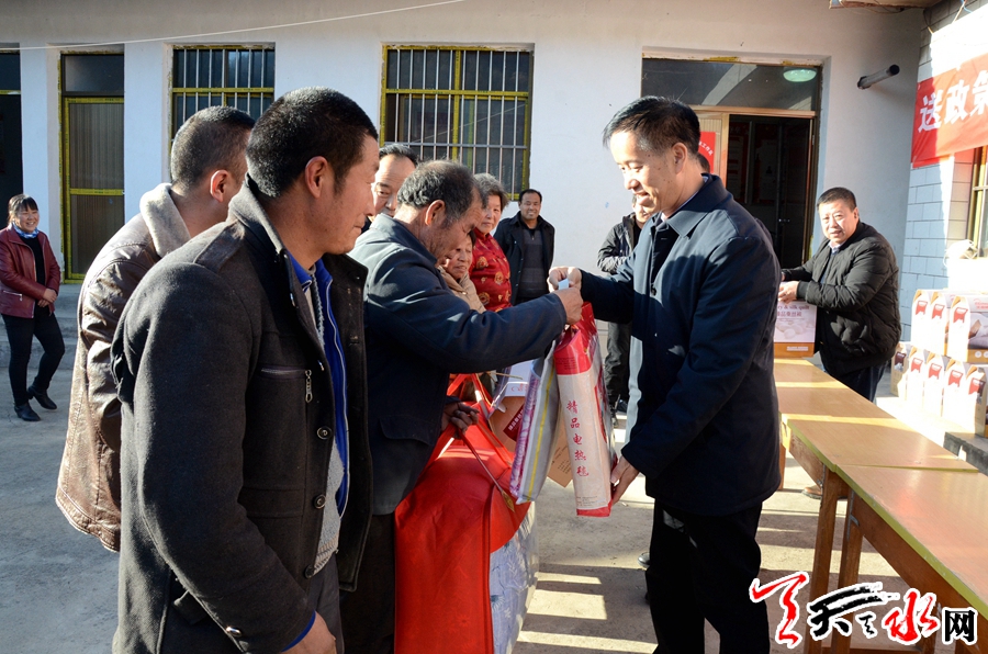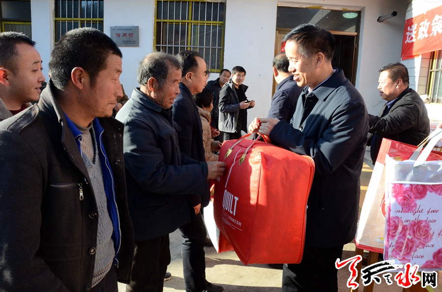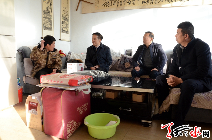 天天天水網(wǎng)訊【記者閆波】12月17日,天水市政協(xié)副主席蘇定武帶領(lǐng)市、區(qū)國土局相關(guān)負(fù)責(zé)人到幫扶點(diǎn)娘娘壩鎮(zhèn)花園村開展“送政策送溫暖送服務(wù)”活動并走訪慰問了貧困戶,為他們送去了黨和政府的溫暖關(guān)懷。