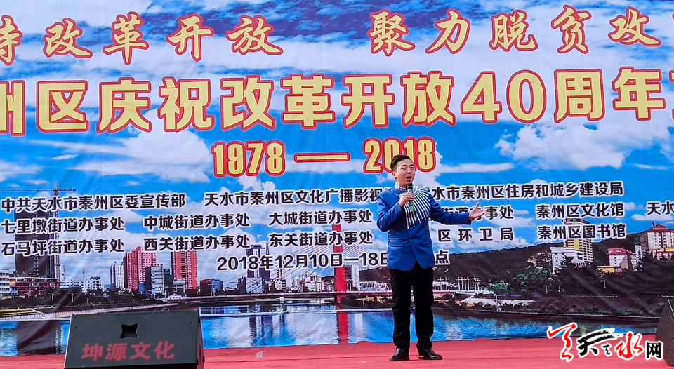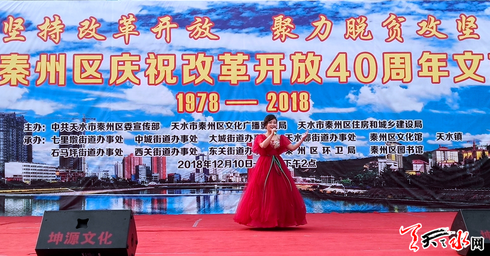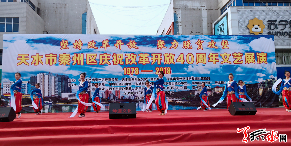 天天天水網(wǎng)訊【記者 張文都】12月10日,由秦州區(qū)委宣傳部、秦州區(qū)文化廣播影視局、秦州區(qū)住房和城鄉(xiāng)建設(shè)局主辦,以“堅(jiān)持改革開(kāi)放,聚力脫貧攻堅(jiān)”為主題的文藝展演在天水市龍城廣場(chǎng)拉開(kāi)帷幕。