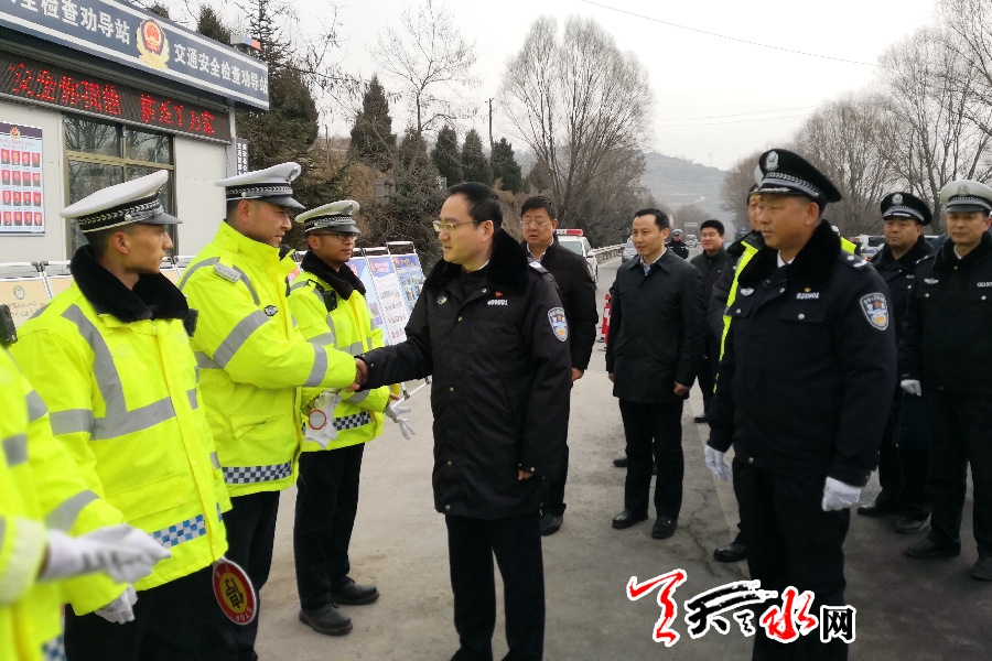 ????天天天水網(wǎng)訊【記者景春燕】12月19日,副省長、省公安廳黨委書記、廳長余建帶領省婦聯(lián)、團省委、省總工會和省公安廳有關部門負責人,前往定西、天水慰問十八里鋪、王甫梁長下坡路段執(zhí)勤點執(zhí)勤交警輔警,督導檢查冬季預防道路交通事故大戰(zhàn)100天專項行動。