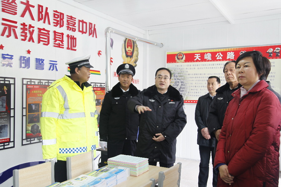 ????在天巉公路王甫梁長下坡路段秦安縣公安局交警大隊郭嘉中隊執(zhí)勤點,余建詳細了解了王甫梁13公里長下坡路段狀況以及“大戰(zhàn)100天”專項行動開展情況,不時詢問執(zhí)勤交警的取暖、吃飯、休息等情況,并為長期駐守在長下坡事故多發(fā)路段保通保暢的執(zhí)勤交警輔警定購了冬季多功能服、暖貼、方便食品等御寒物資。