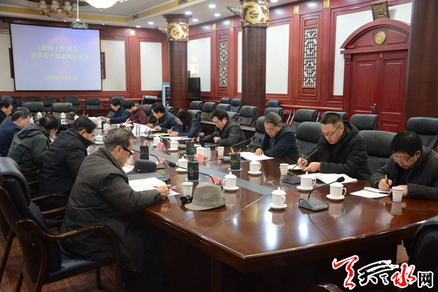 天天天水網(wǎng)訊【記者何郁】12月29日上午,副市長王燕主持召開《政府工作報告》征求意見座談會,就《政府工作報告》(征求意見稿)聽取部分老干部的意見建議。