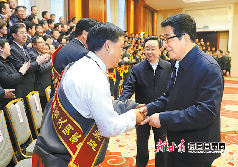 12月29日,第十四批全省精神文明建設(shè)命名表彰大會(huì)在蘭州召開(kāi)。會(huì)前,省委書(shū)記、省人大常委會(huì)主任林鐸,省委副書(shū)記、省長(zhǎng)唐仁健親切接見(jiàn)了受表彰的先進(jìn)集體和個(gè)人代表?!「拭C日?qǐng)?bào)·每日甘肅網(wǎng)記者?高檣