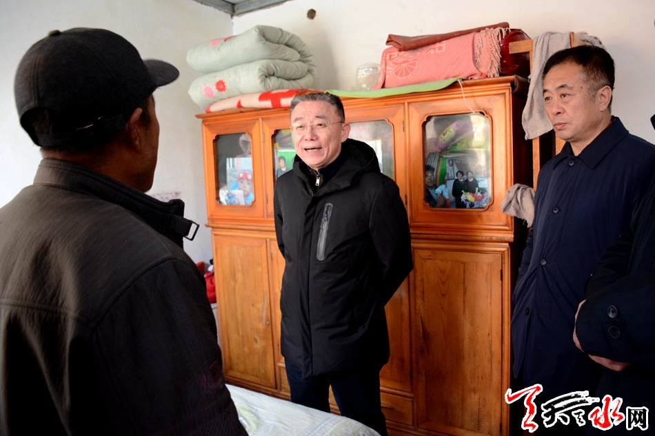 王銳一行隨機走進凌智軍、趙明珍、胡維軍、溫兆松等貧困戶家中,詳細詢問增收、飲水、住房、醫(yī)療報銷、上學、取暖、公益性崗位等情況。在凌智軍家中,對其不踏實務工的兒子,動之以情、曉之以理,循循善誘、諄諄教誨,鼓勵他堅定信心,靠勤勞的雙手脫貧致富;對近期剛做過手術(shù)的溫兆松愛人,詳細了解康復、醫(yī)療報銷等情況,叮囑鎮(zhèn)村干部要落實好新農(nóng)合、大病救助等政策。他強調(diào),各級干部要心系群眾,對貧困老年人、重病人和殘疾人等特定群體,幫扶措施必須細之又細、實之又實,想盡一切辦法為他們排憂解難。