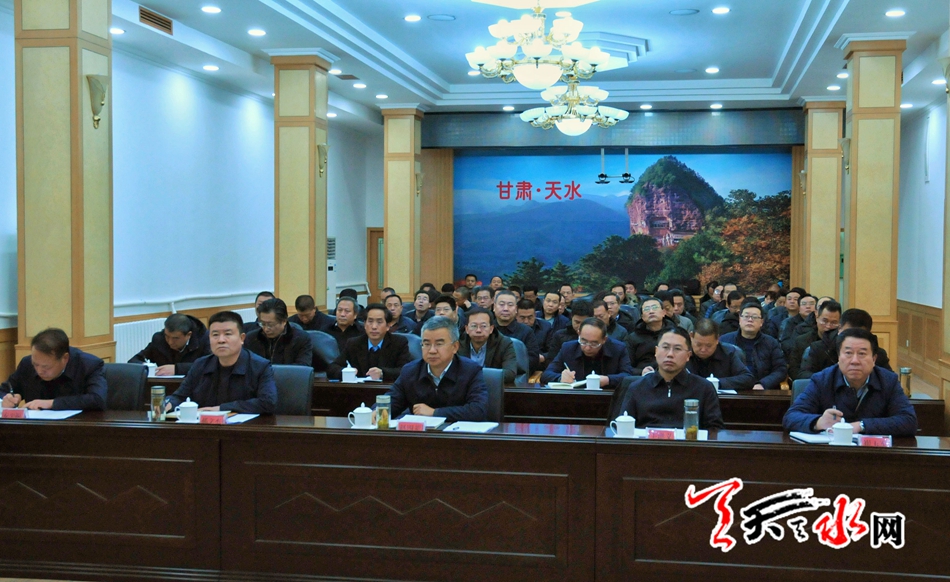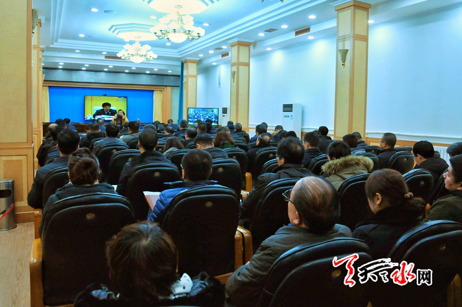市領(lǐng)導(dǎo)趙四輩、王洪義、郝文杰在天水分會(huì)場(chǎng)參加會(huì)議。