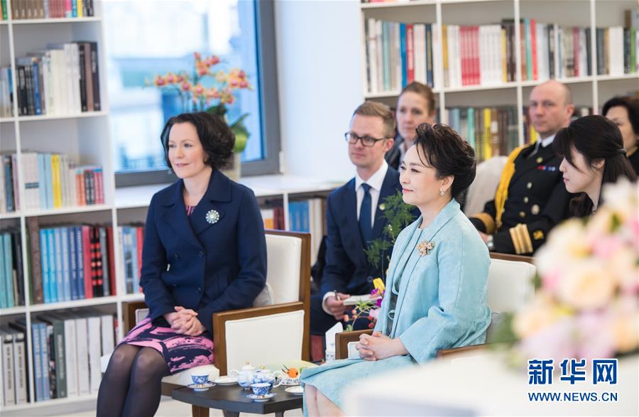 書店三層,茶藝飄香,兩國元首夫人一邊品茗,一邊欣賞由北京外國語大學和中國音樂學院師生帶來的精彩演出。芬蘭語專業(yè)學生們朗誦了由豪吉歐創(chuàng)作的獲獎詩歌《一月已然春天》和《我親愛的寶貝》,豪吉歐驚喜地連連稱贊。身著古裝的女生伴隨著鋼琴和古箏曲吟唱中國古詞賦《春光好》和《鳳求凰》。小提琴和鋼琴演奏芬蘭作曲家西貝柳斯的作品。詩詞歌賦音符搭起人們心靈溝通的橋梁,留下中芬友好溫馨美麗的瞬間。