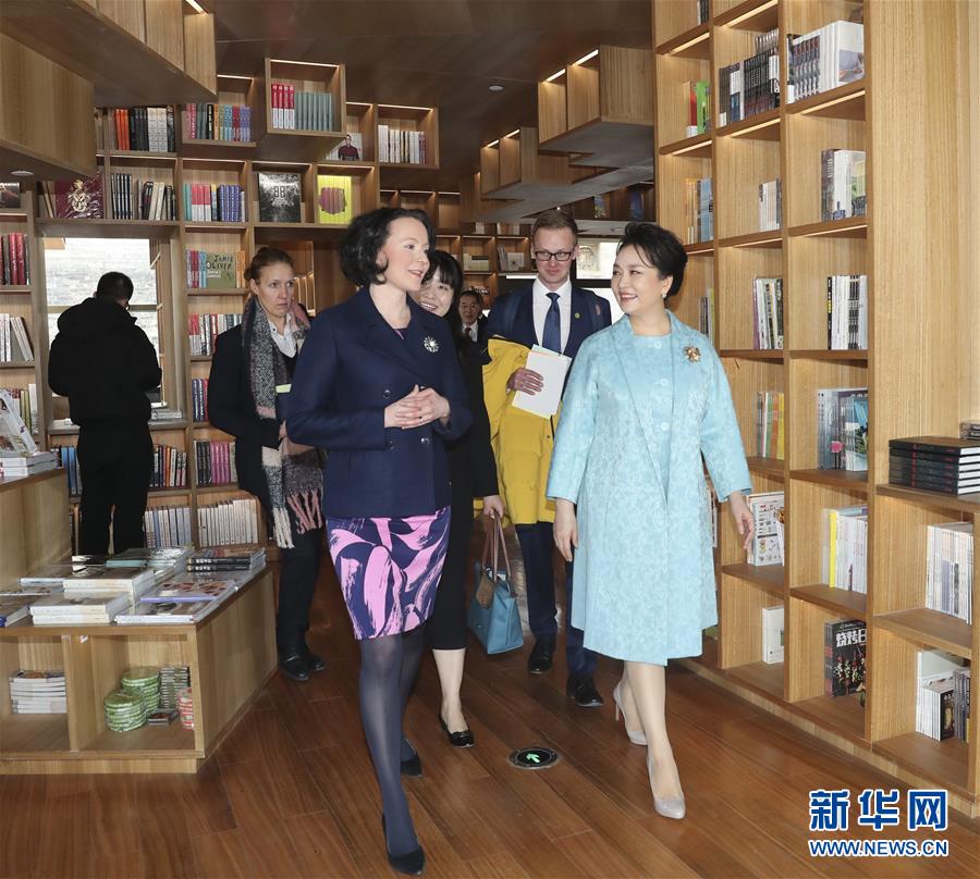 冬日午后的暖陽中,兩國元首夫人相聚前門北京坊。彭麗媛在葉壹堂書店熱情迎接豪吉歐。兩人徜徉在書店的各個主題區(qū)域,聽取有關北京坊和書店的介紹。在親子閱讀區(qū),家長們正在陪同孩子讀書,彭麗媛和豪吉歐向他們親切招手致意。在高大的書墻前,兩國元首夫人合影留念。窗外望去,正陽門城樓在藍天映襯下顯得格外壯觀,仿佛在述說著北京這座古城的悠久歷史。彭麗媛向豪吉歐介紹了前門大柵欄地區(qū)的歷史和改造情況。