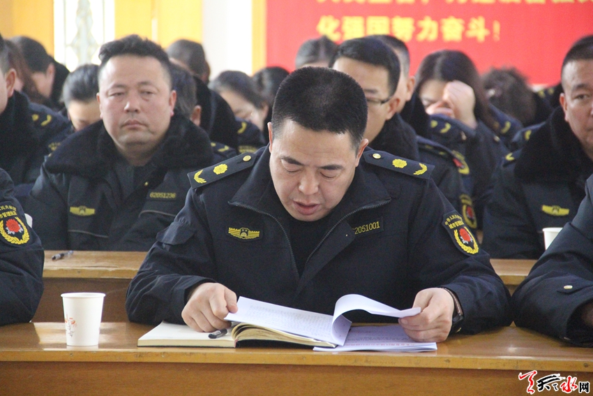 天天天水網(wǎng)訊 2019年1月14日,秦州區(qū)2018年度考核工作領(lǐng)導(dǎo)小組深入?yún)^(qū)執(zhí)法局,采取聽取匯報(bào)、述職述廉、民主測評、個(gè)別談話、查閱資料等方式,全面、系統(tǒng)、準(zhǔn)確、客觀考核區(qū)執(zhí)法局共性目標(biāo)和業(yè)務(wù)目標(biāo)完成情況,并對領(lǐng)導(dǎo)班子和領(lǐng)導(dǎo)干部進(jìn)行了考核和綜合研判,區(qū)執(zhí)法局黨組書記、局長王禳虎代表領(lǐng)班子逐項(xiàng)向考核組做了詳細(xì)匯報(bào)。