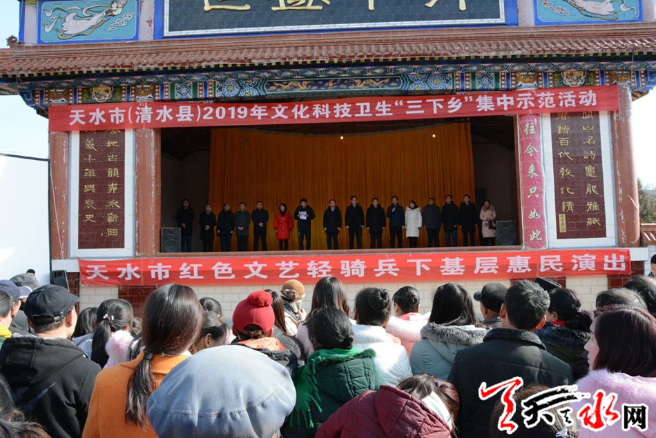 天天天水網(wǎng)訊【全媒體記者馬哲】1月19日,2019年度全市文化科技衛(wèi)生“三下鄉(xiāng)”集中示范活動在清水縣秦亭鎮(zhèn)柳林村舉行。通過系列活動,為群眾送去暖心祝福,豐富村民精神文化生活。