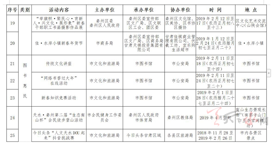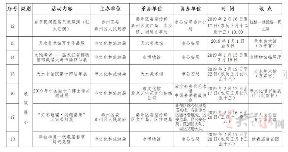 天水市2019年春節(jié)重點文化旅游活動正式敲定