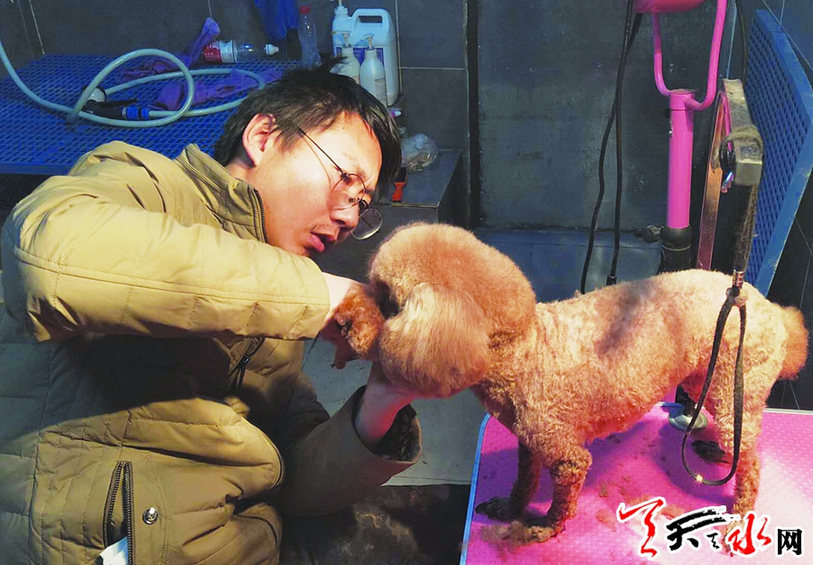 “去年春節(jié)人挺多的,幾乎沒(méi)有空位,最多的時(shí)候接收8只,寄養(yǎng)高峰集中在大年三十到正月初五?!蔽挥诿裰髀穭?dòng)員巷的一家寵物店老板馬城龍一邊給一只泰迪美容一邊介紹,他說(shuō),大多數(shù)人在春節(jié)期間寄養(yǎng)一個(gè)禮拜左右,泰迪、金毛、拉布拉多等寵物最多,大型犬一天70元,小型犬一天30元。他和老婆過(guò)年也不休息,所有的時(shí)間和經(jīng)歷都花在寵物的溜達(dá)、喂食、洗澡等事上。