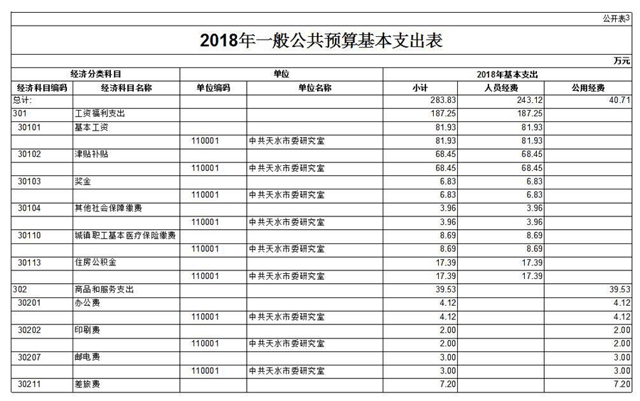 3.2018年一般公共預算基本支出表