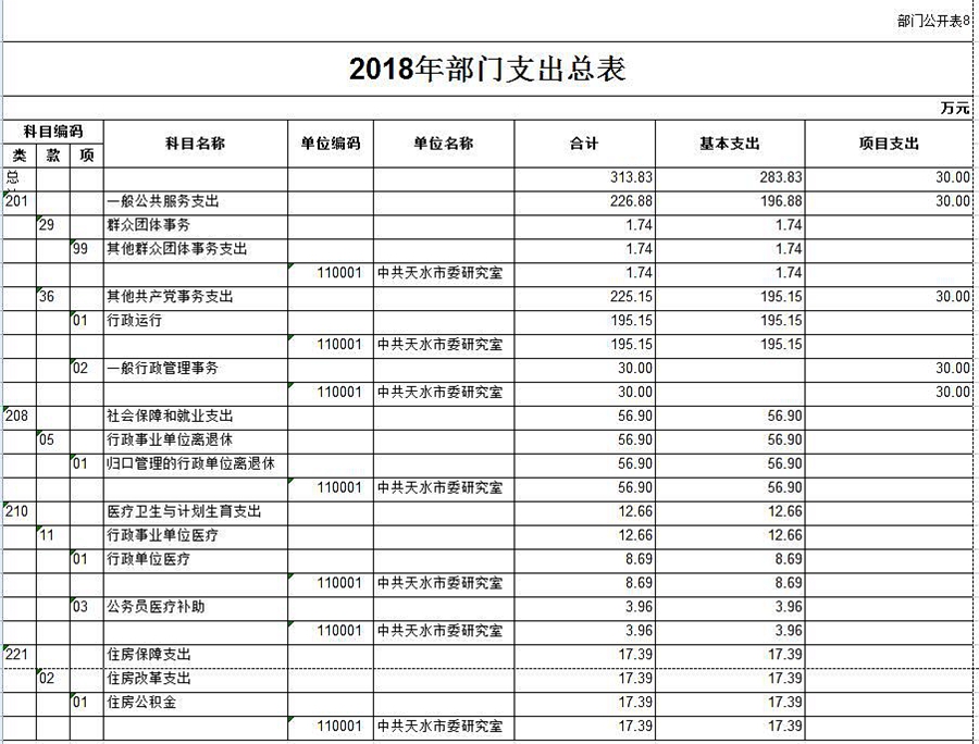 8.2018年部門支出總表