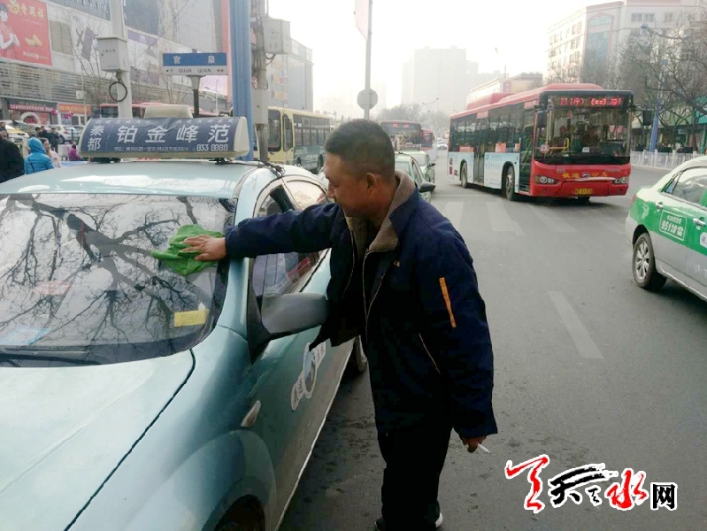 1月23日上午9時(shí)許,記者要去麥積區(qū)辦事,站在秦州區(qū)廖家磨路口等了近十分鐘,才打到了一輛出租車。上車坐穩(wěn),車輛發(fā)動(dòng)后,年輕的司機(jī)一邊扳倒計(jì)價(jià)器,一邊很有禮貌地說(shuō)了聲:“你好,去哪里?”當(dāng)?shù)弥浾咭湻e區(qū)道北時(shí),面龐黝黑的司機(jī)師傅咧嘴一笑,歡快地說(shuō):“好!”